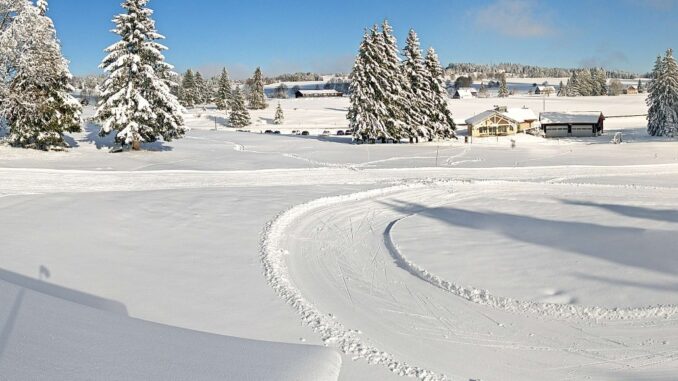 Le chemin Blanc qui monte au Risoux n’est pas enneigé. Merci de rouler doucement !